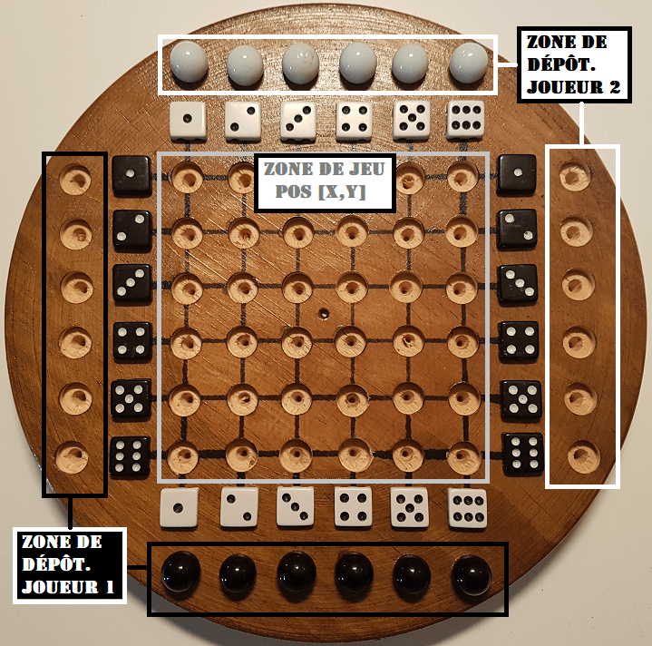 → 6 places pour ses billes à jouer (Noires ou Blanches)